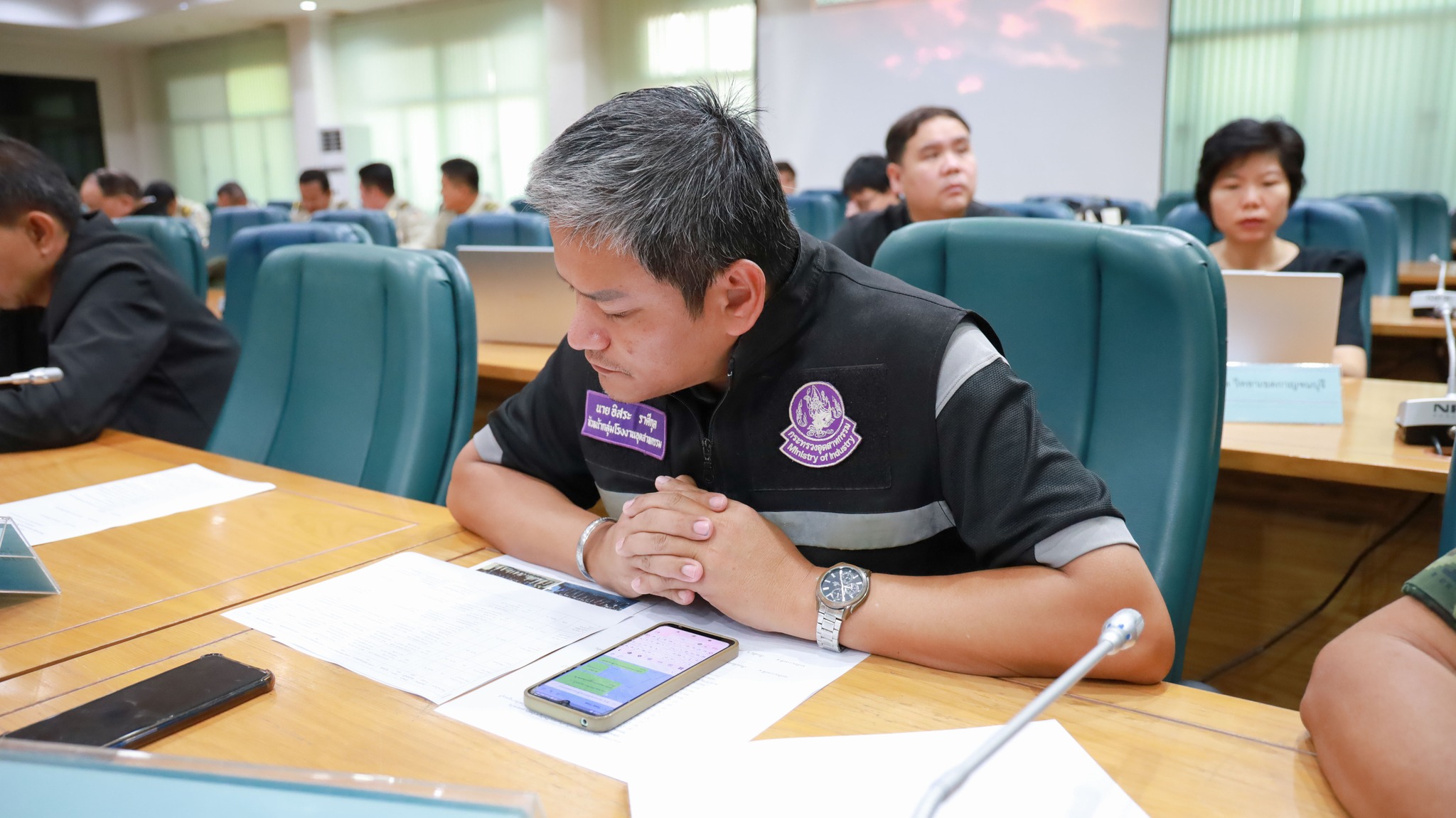 วันพฤหัสบดี ที่ 4 ธันวาคม 2568 เวลา 8.30 น. นายธีระ แก้วพิมล อุตสาหกรรมจังหวัดกาญจนบุรี มอบหมายให้ นายอิสระ ราศีกุล หัวหน้ากลุ่มโรงงานอุตสาหกรรม พร้อมด้วย นายภัคนันท์ ประดับ วิศวกรปฏิบัติการ เข้าร่วมประชุมกองอำนวยการป้องกันและบรรเทาสาธารณภัยจังหวัดกาญจนบุรีเตรียมความพร้อมการป้องกันและแก้ไขปัญหาไฟป่า หมอกควัน และฝุ่นละอองขนาดเล็ก (PM2.5) ในพื้นที่จังหวัดกาญจนบุรี ณ ห้องประชุมแควใหญ่ ชั้น 5 ศาลากลางจังหวัดกาญจนบุรี โดยมี นายวุฒิพงษ์ สุภัควนิช รองผู้ว่าราชการจังหวัดกาญจนบุรี รักษาราชการแทนผู้ว่าราชการจังหวัดกาญจนบุรี เป็นประธานการประชุม ร่วมกับนายวีระศักดิ์ โควสุรัตน์ ประธานสภาลมหายใจกรุงเทพฯ พร้อมด้วยคณะทำงานเข้าร่วมการประชุมฯ เพื่อให้การเตรียมการป้องกันและแก้ไขปัญหาไฟป่าในพื้นที่จังหวัดกาญจนบุรีเป็นไปอย่างมีประสิทธิภาพพร้อมมาตรการในการป้องกันและแก้ไขปัญหาอย่างเป็นรูปธรรม