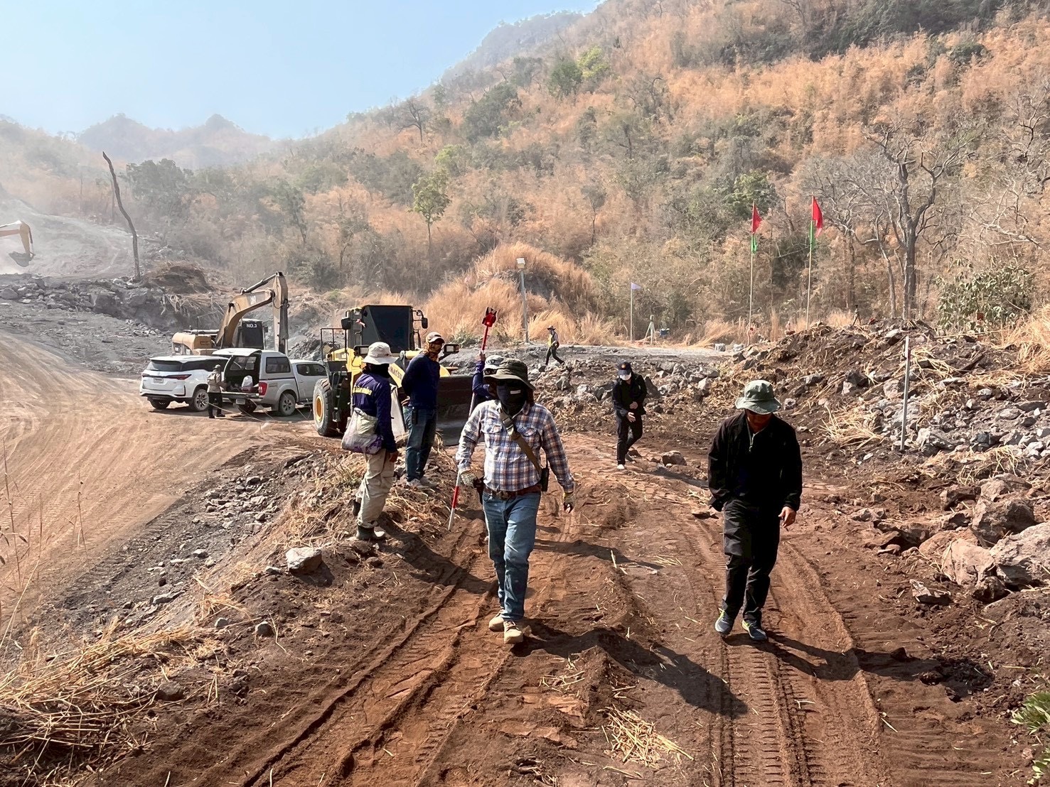 ลงพื้นที่รังวัดจัดทำเเผนที่ภูมิประเทศเพื่อคำนวนหาปริมาตรที่ได้จากการทำเหมือง