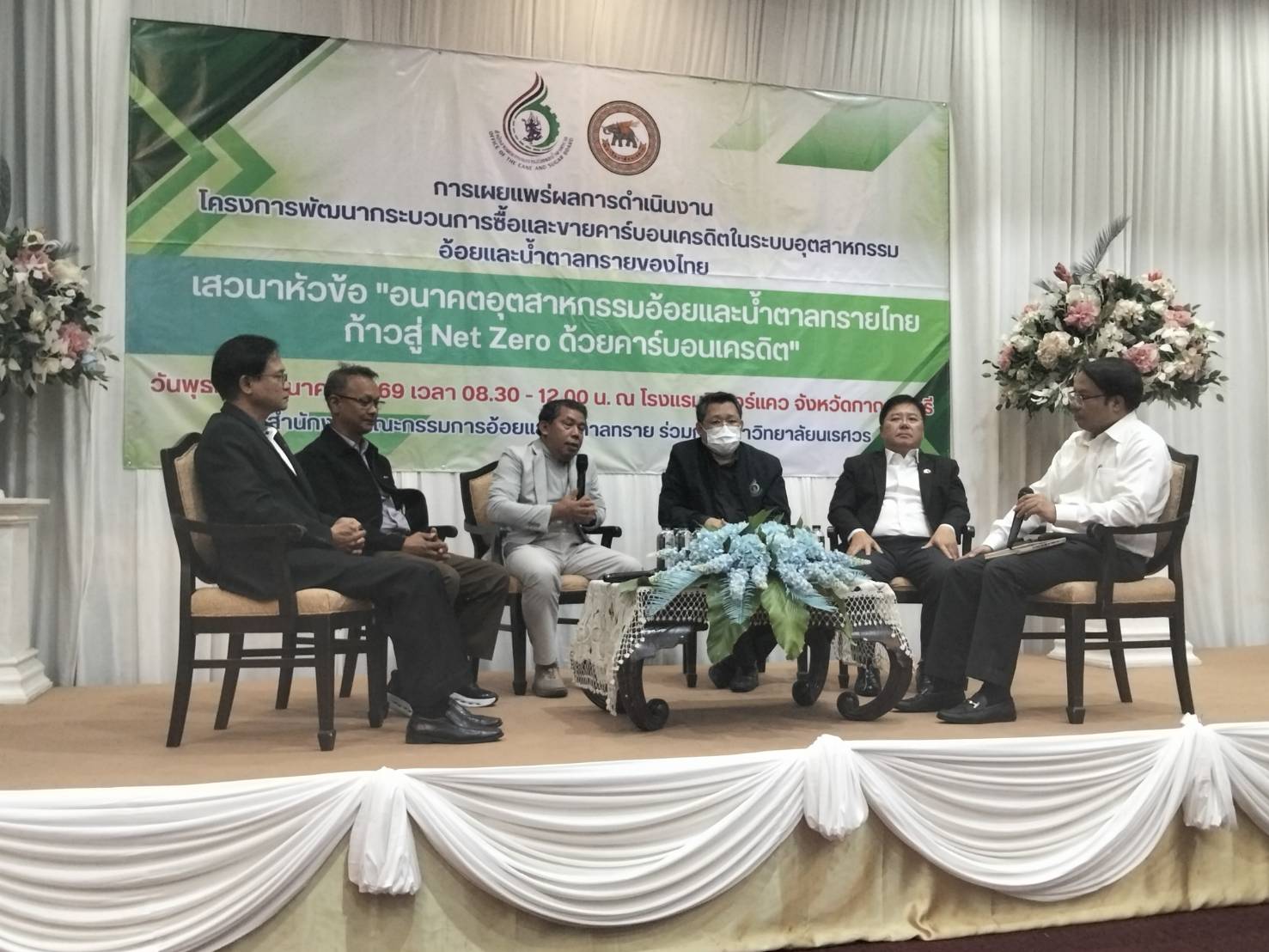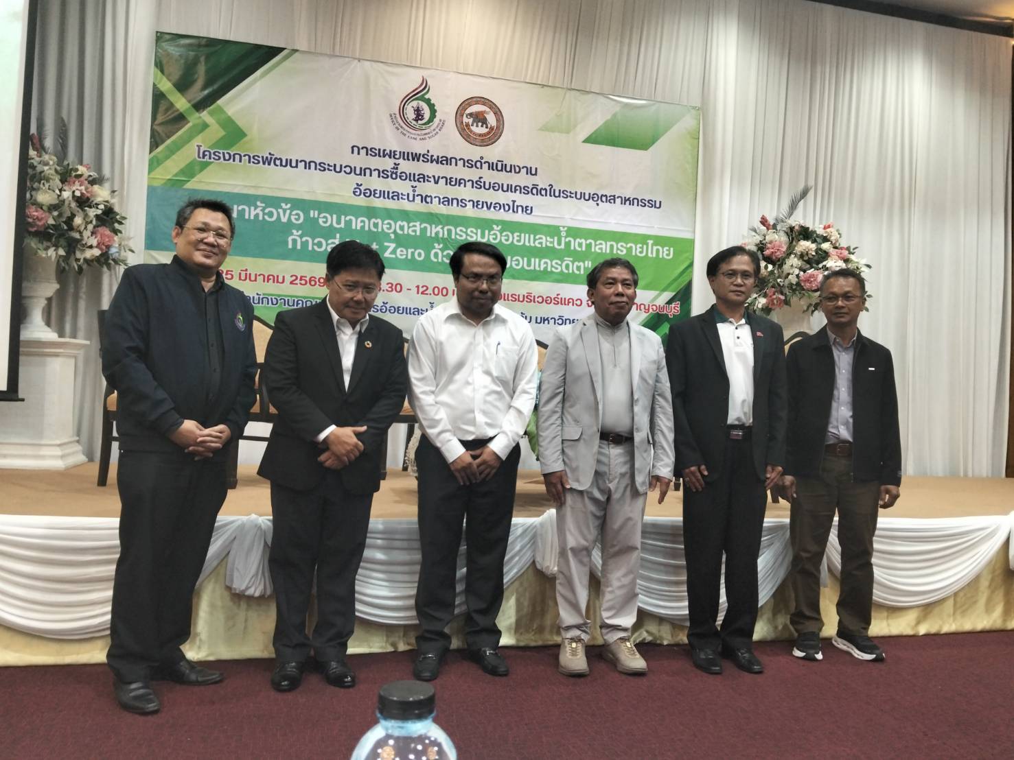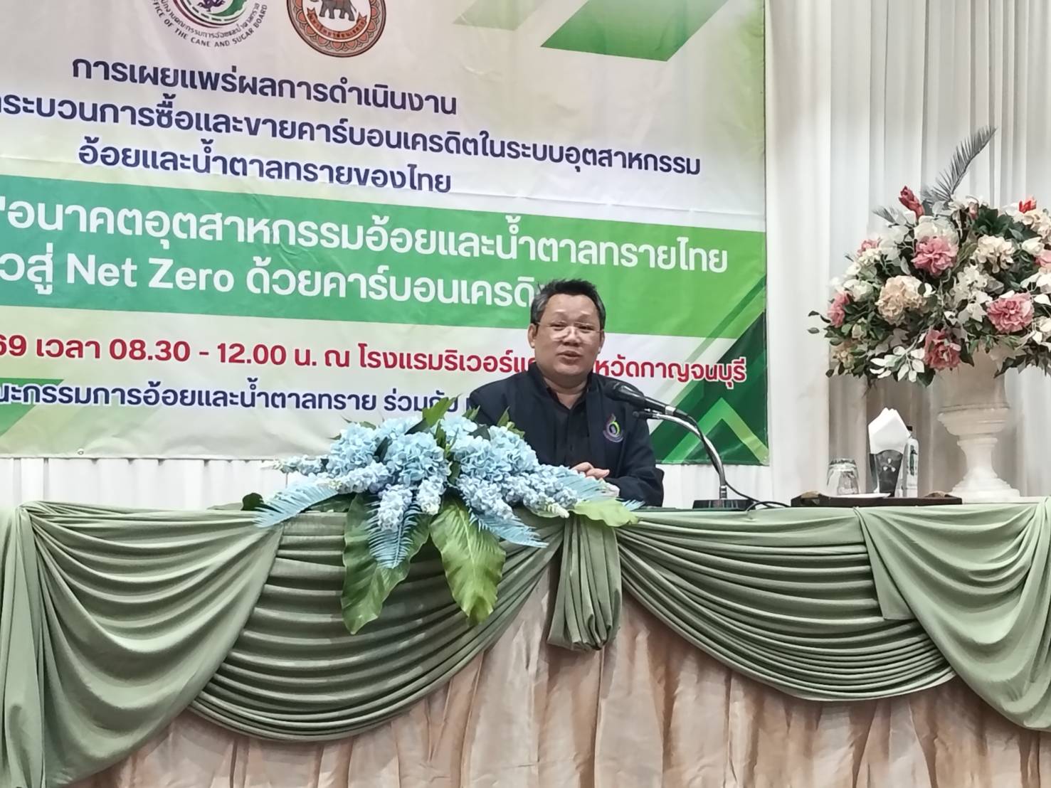 วันพุธที่ 25 มีนาคม พ.ศ. 2569 เวลา 09.0๐ น. นายธีระ แก้วพิมล อุตสาหกรรมจังหวัดกาญจนบุรี ร่วมการเผยแพร่ผลการดำเนินงานโครงการพัฒนากระบวนการซื้อและขายคาร์บอนเครดิตในระบบอุตสาหกรรมอ้อยและน้ำตาลทรายของไทย พร้อมร่วมการ “เสวนาในหัวข้ออนาคตอุตสาหกรรมอ้อยและน้ำตาลทรายไทยก้าวสู่ Net Zero ด้วยคาร์บอนเครดิต” พร้อมด้วย ตัวแทนจากสำนักงานคณะกรรมการอ้อยและน้ำตาลทราย ตัวแทนโรงงานน้ำตาล ตัวแทนเกษตรกร ตัวแทนผู้บริหารจาก อบก. (TGO) การรับรองและทิศทางตลาดคาร์บอนในไทย และสรุปโมเดล Worst/Best Case Scenario เพื่อการพัฒนาโครงการคาร์บอนเครดิต โดย หัวหน้าโครงการ มหาวิทยาลัยนเรศวร จัดโดยสำนักงานคณะกรรมการอ้อยและน้ำตาลทราย ร่วมกับ มหาวิทยาลัยนเรศวร ณ ห้องประชุมสังขละบุรี โรงแรมริเวอร์แคว จังหวัดกาญจนบุรี